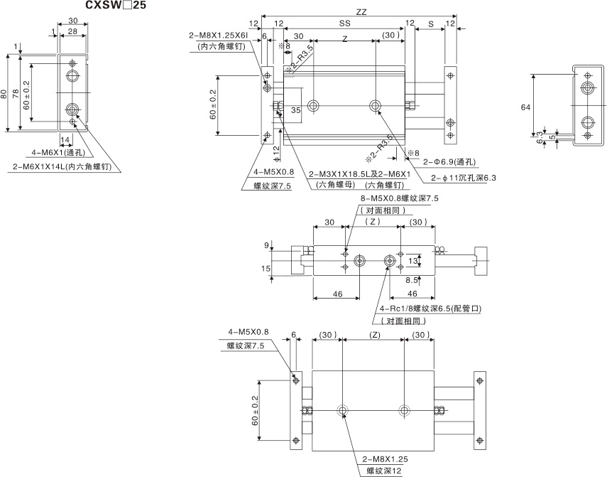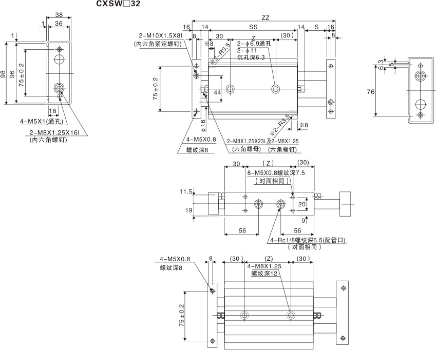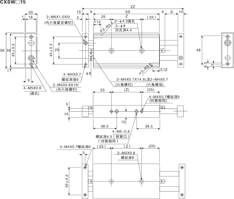 | 缓冲 | 两端橡胶缓冲 | |||||